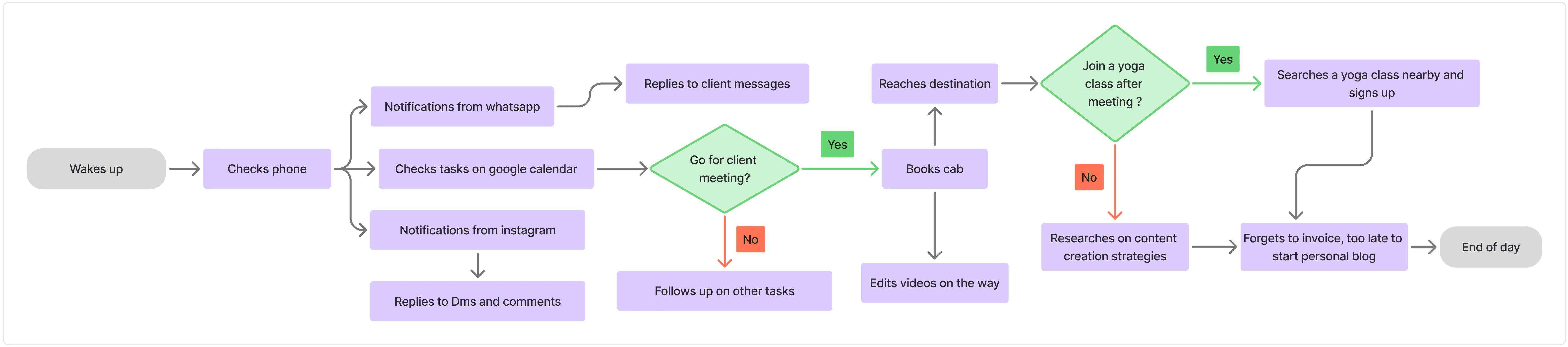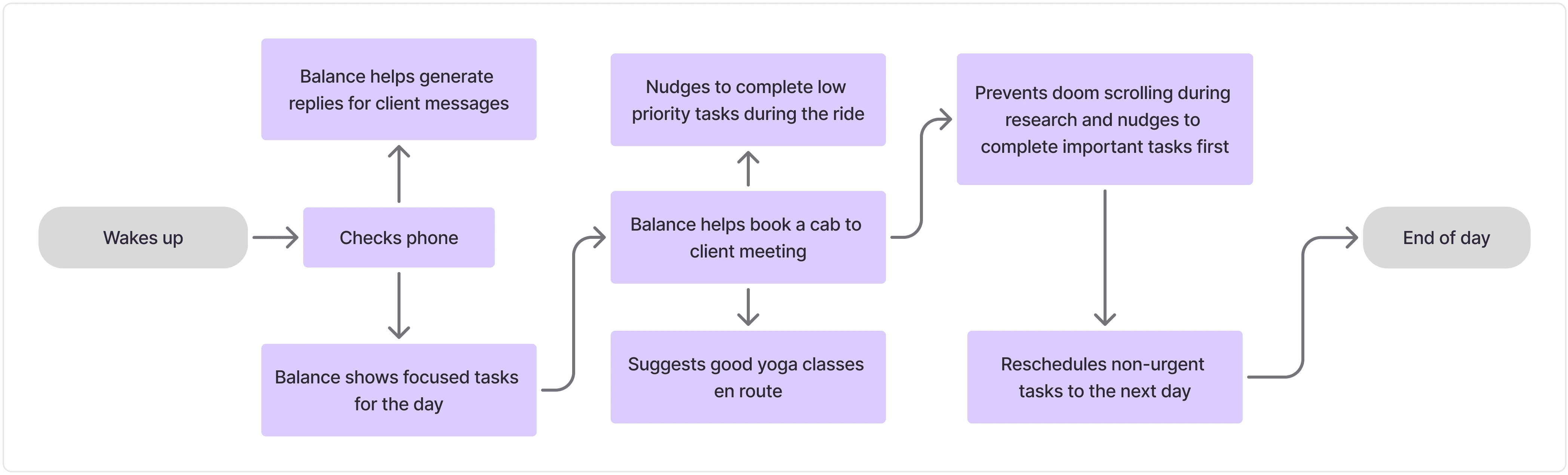 After this, my creator created user flows for Priya, showcasing her day before and after using me.