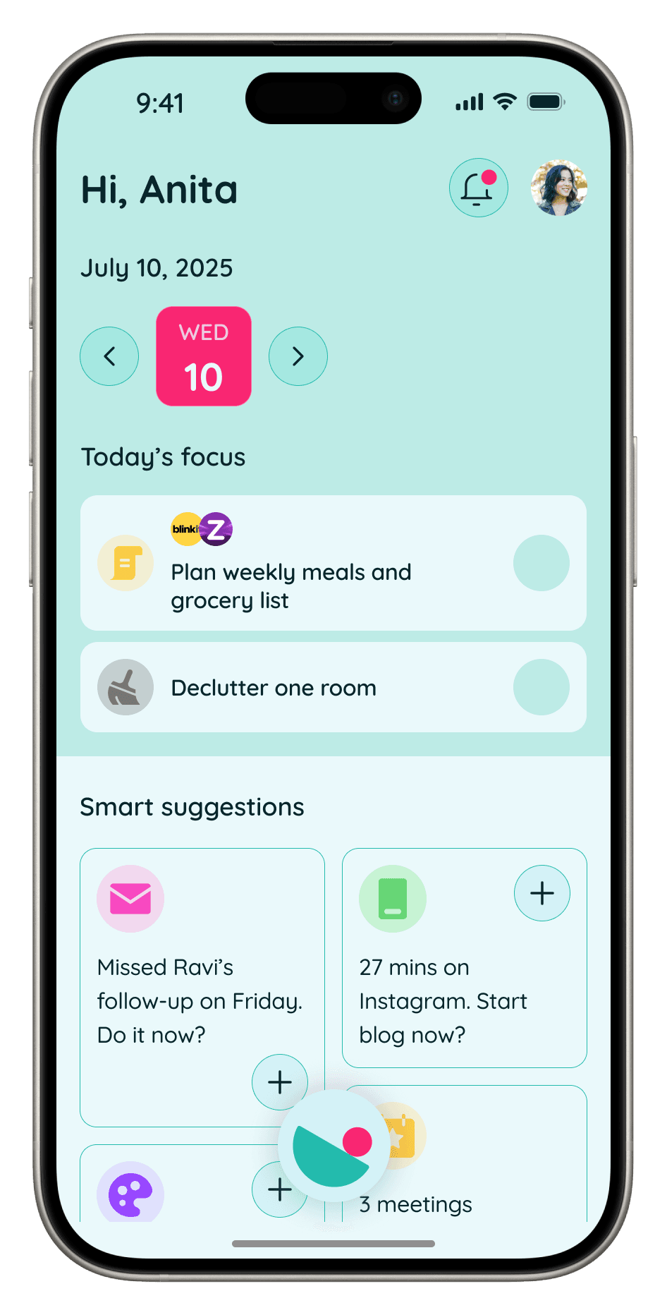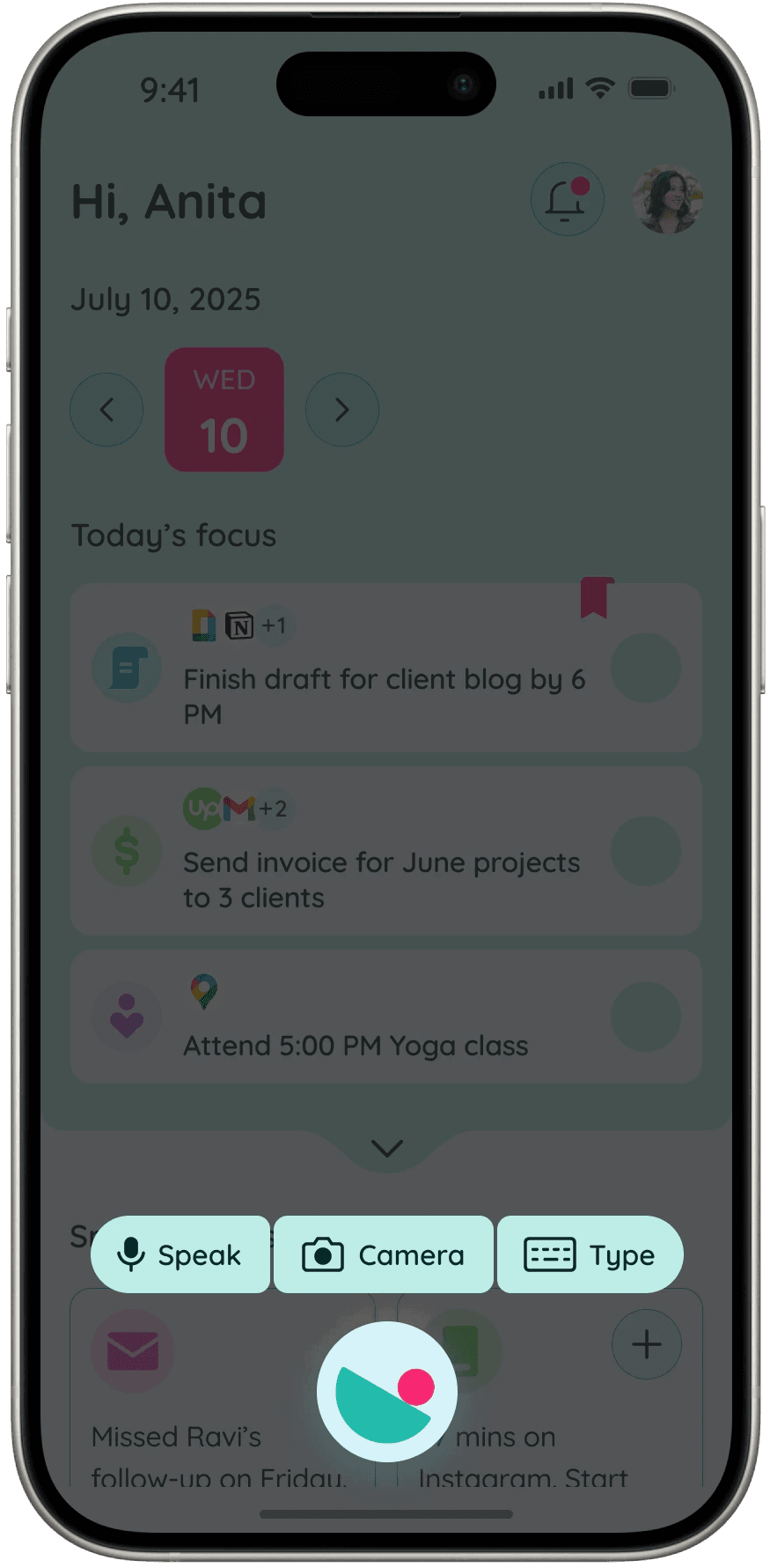 I surface them in “Today’s Focus” with one-tap action buttons.