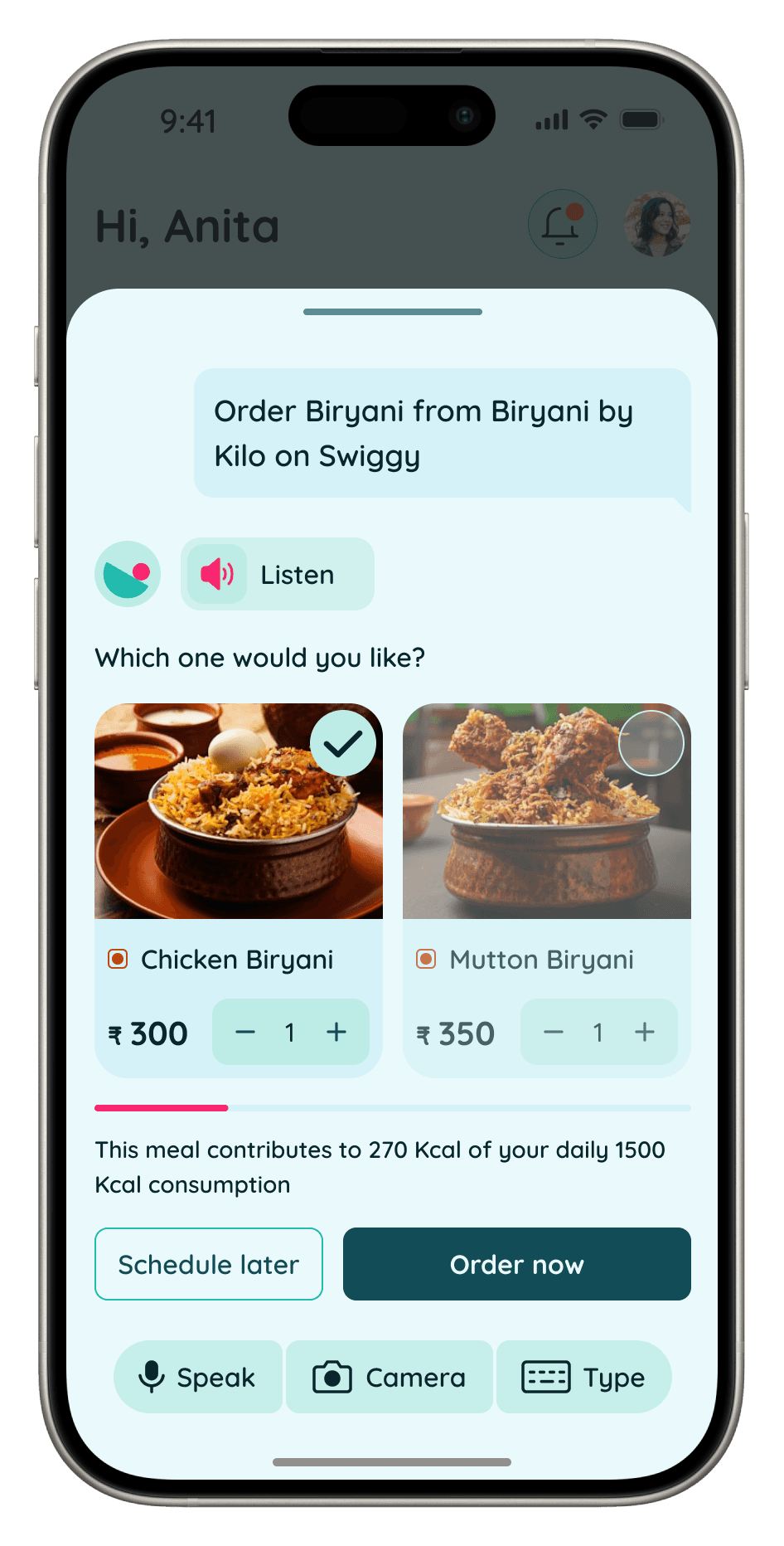 I don't behave like a chatbot. Instead of waiting for a prompt, I proactively intervene with a health-conscious insight after you've placed an order.